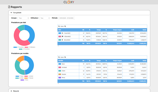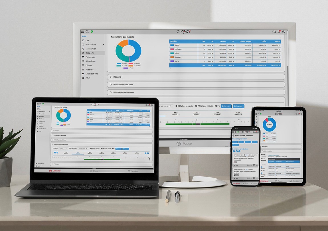 La pointeuse intégrée permet un suivi performant et précis du temps de travail pour chaque salarié. L’application CLOXY offre une accessibilité multiplate-forme qui fonctionne sur tous type d’interface : Pc, tablette, smartphone, etc…